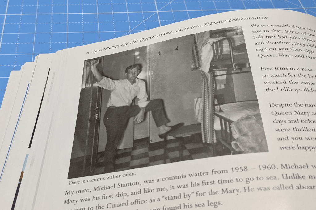 Later in the book Dave recounts revisiting the Queen Mary with his wife and family at the ship’s new home in California, as well as going on Queen Mary’s successor, the Queen Mary 2 (where he even got to meet Commodore Warrick!)